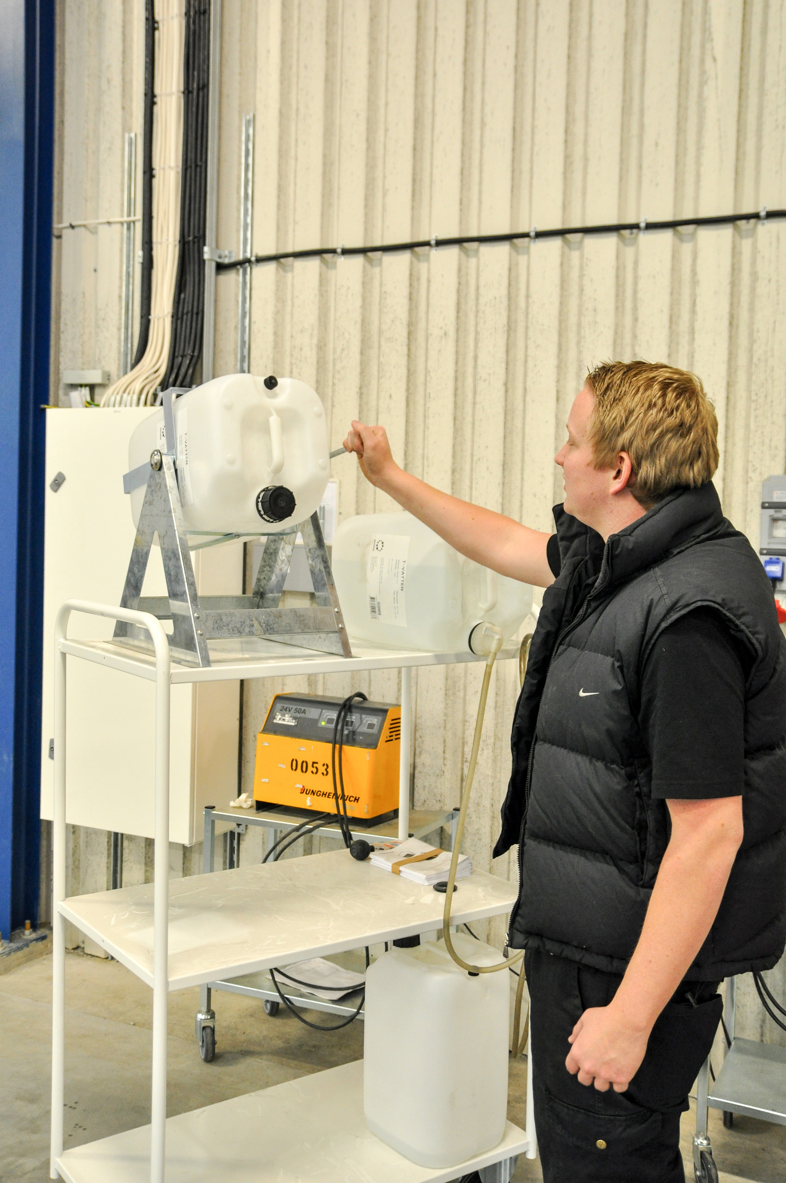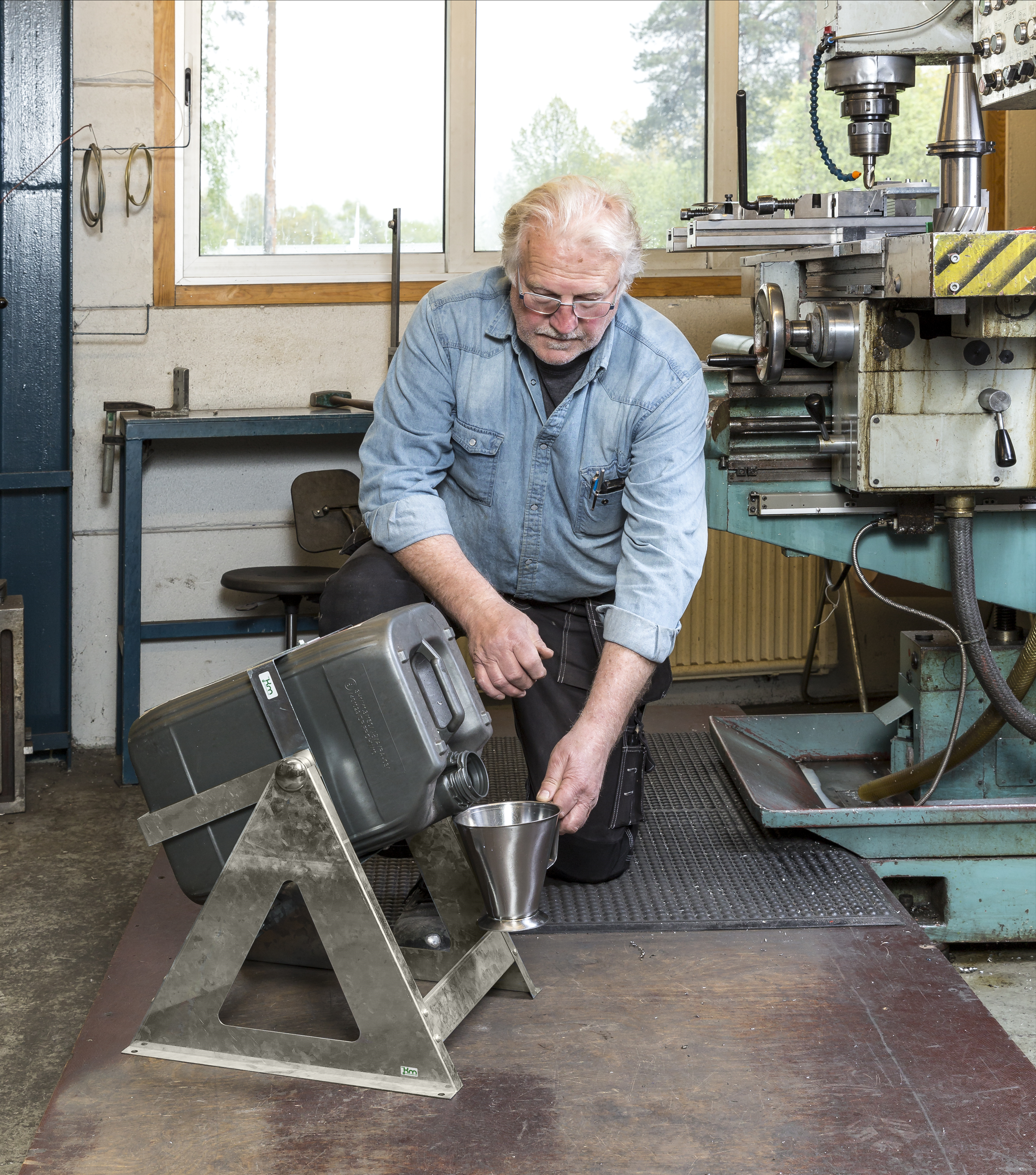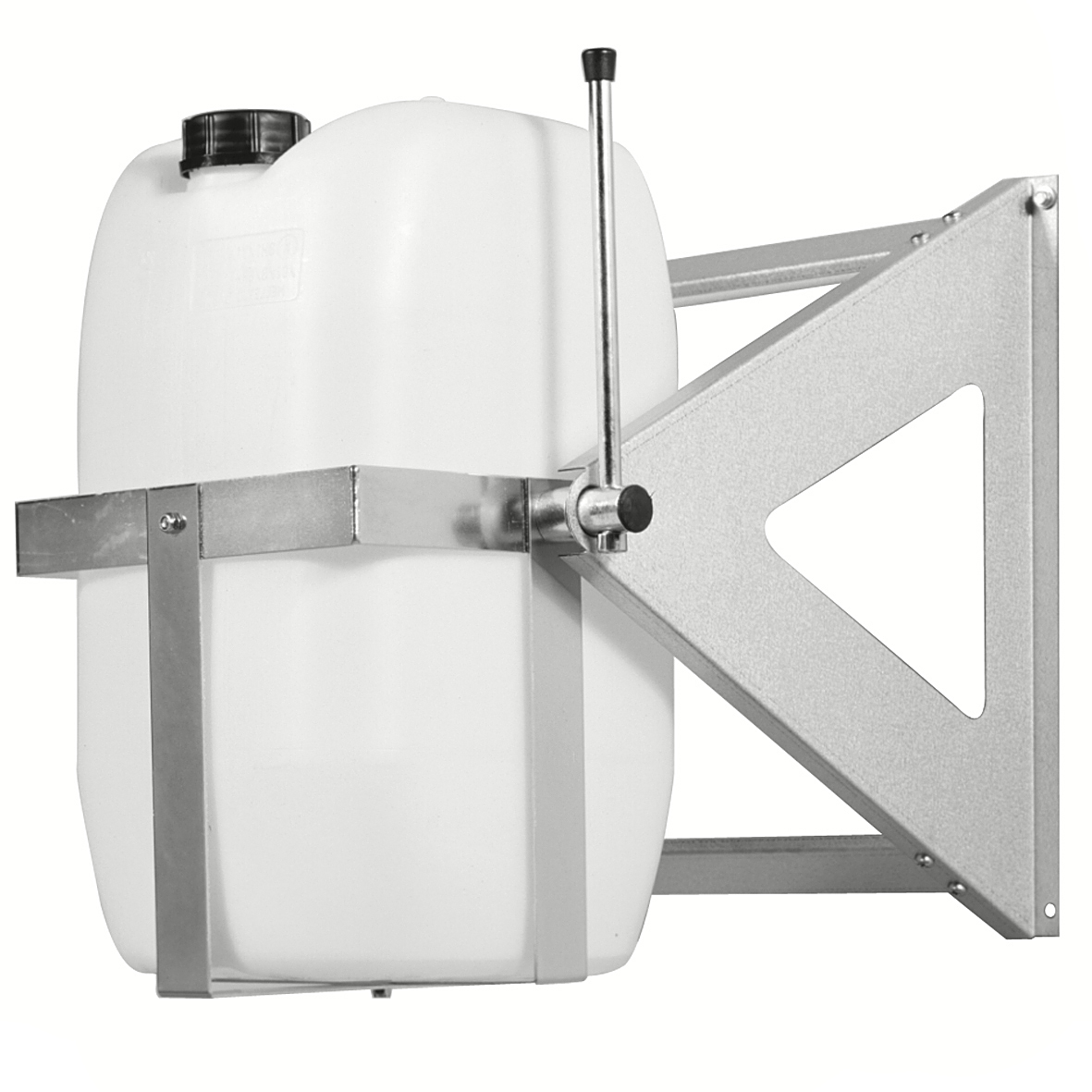 The perfect product to use when handling with 25 L plastic tubes. Can be mounted on both floor and wall.