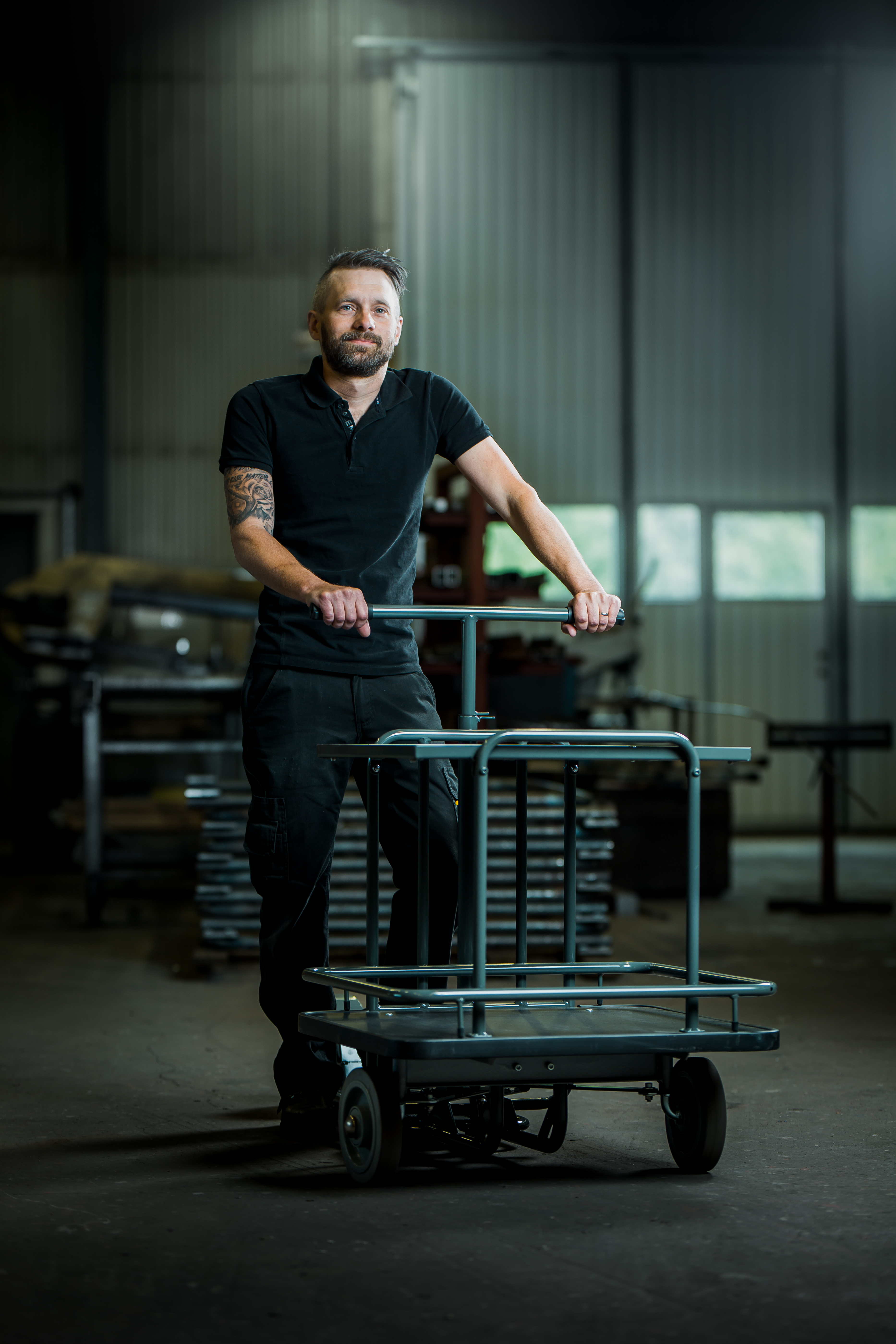Scooter for fast and safe movement between workplaces. Rubberized handles for ergonomic grip. Base plate with Anstislip surface for secure foot placement and bell.