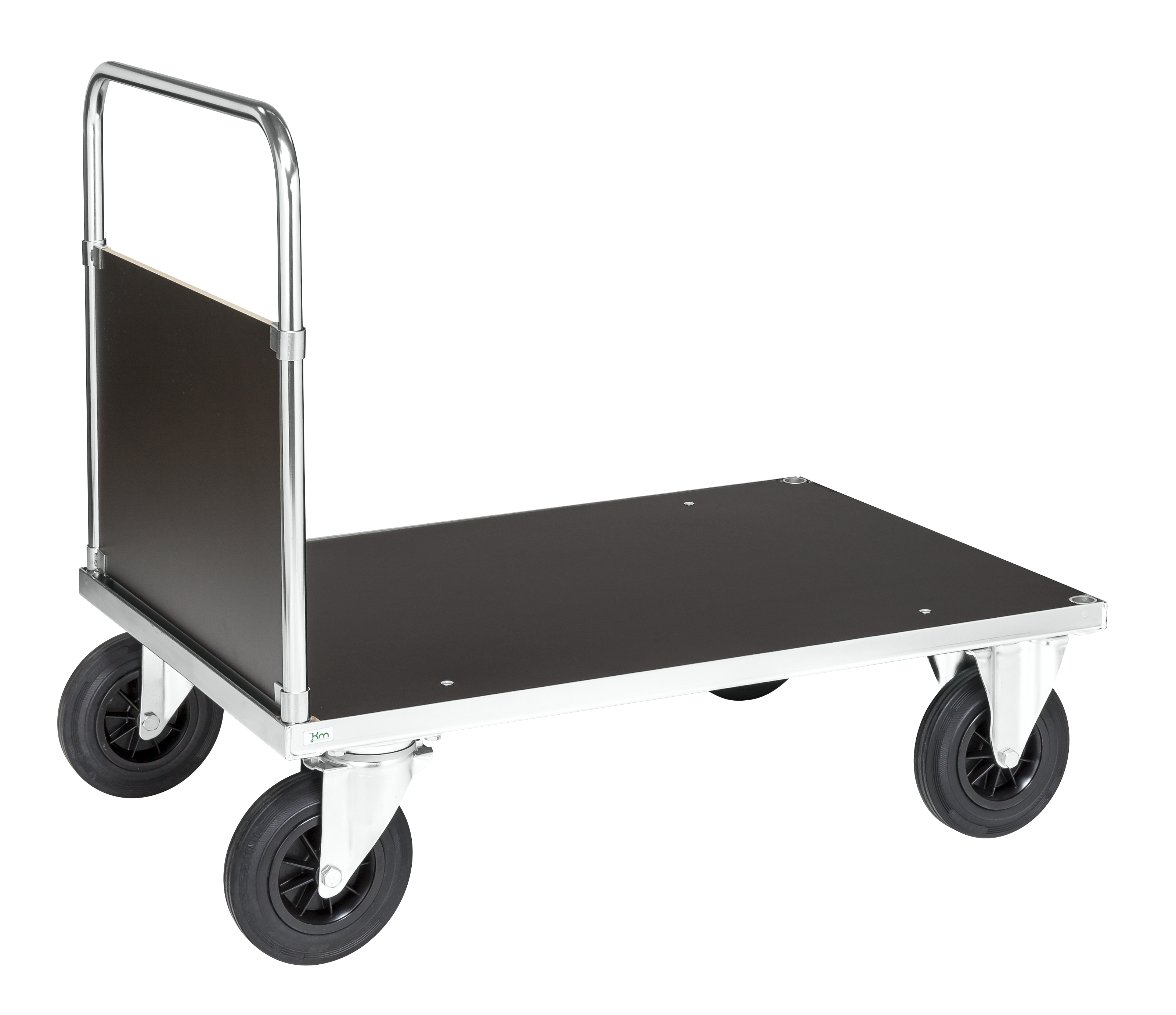 Smart end panel platform truck available in several models. Available with one or two end panels and with or without brake. Serie 500 also offers table trolley, shelf trolley, box trolley, end panel trolley and other variants of the platform trolley.