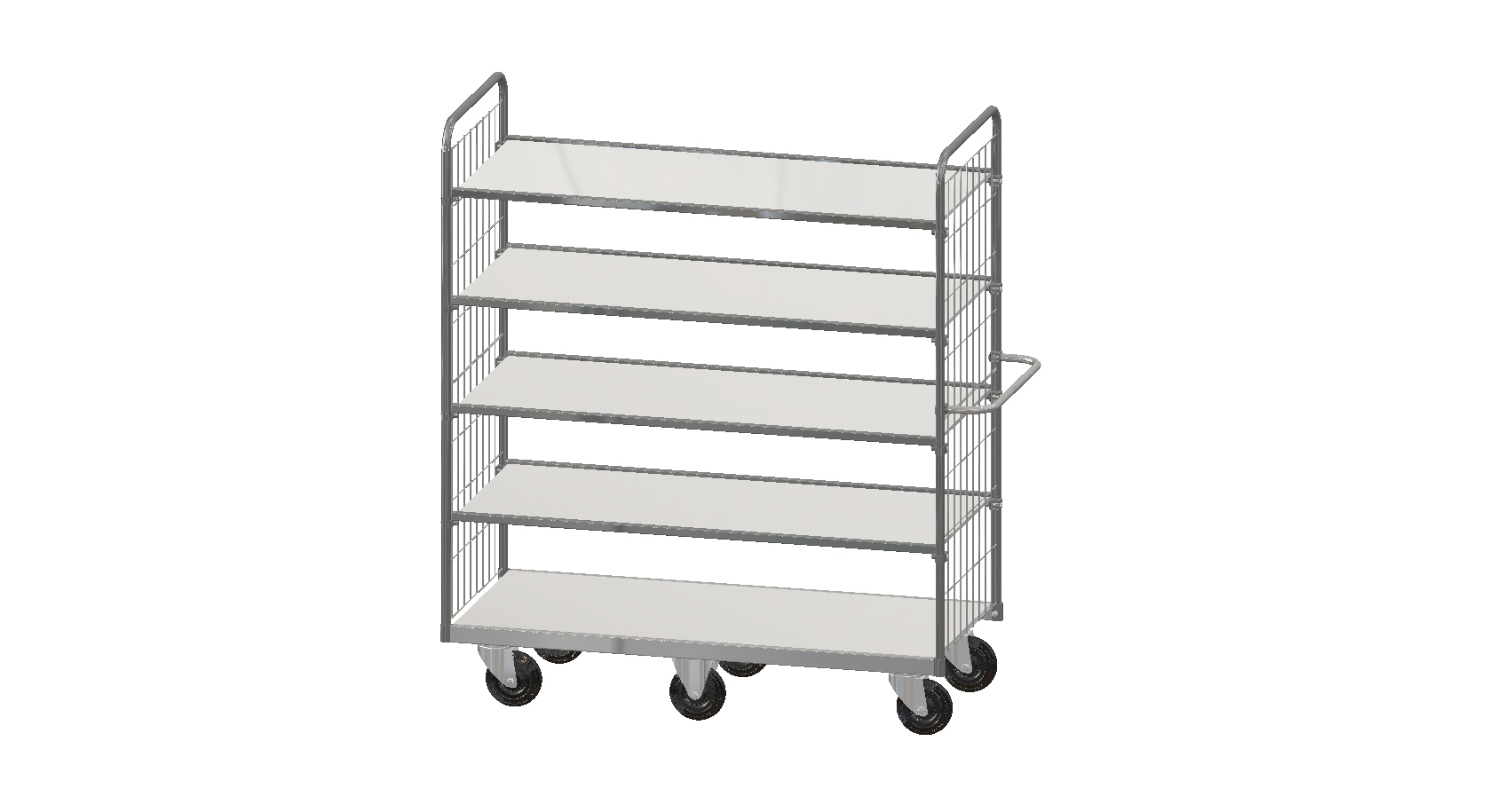 Center-mounted castors make the trolley stable to drive and easy to turn in tight spaces.