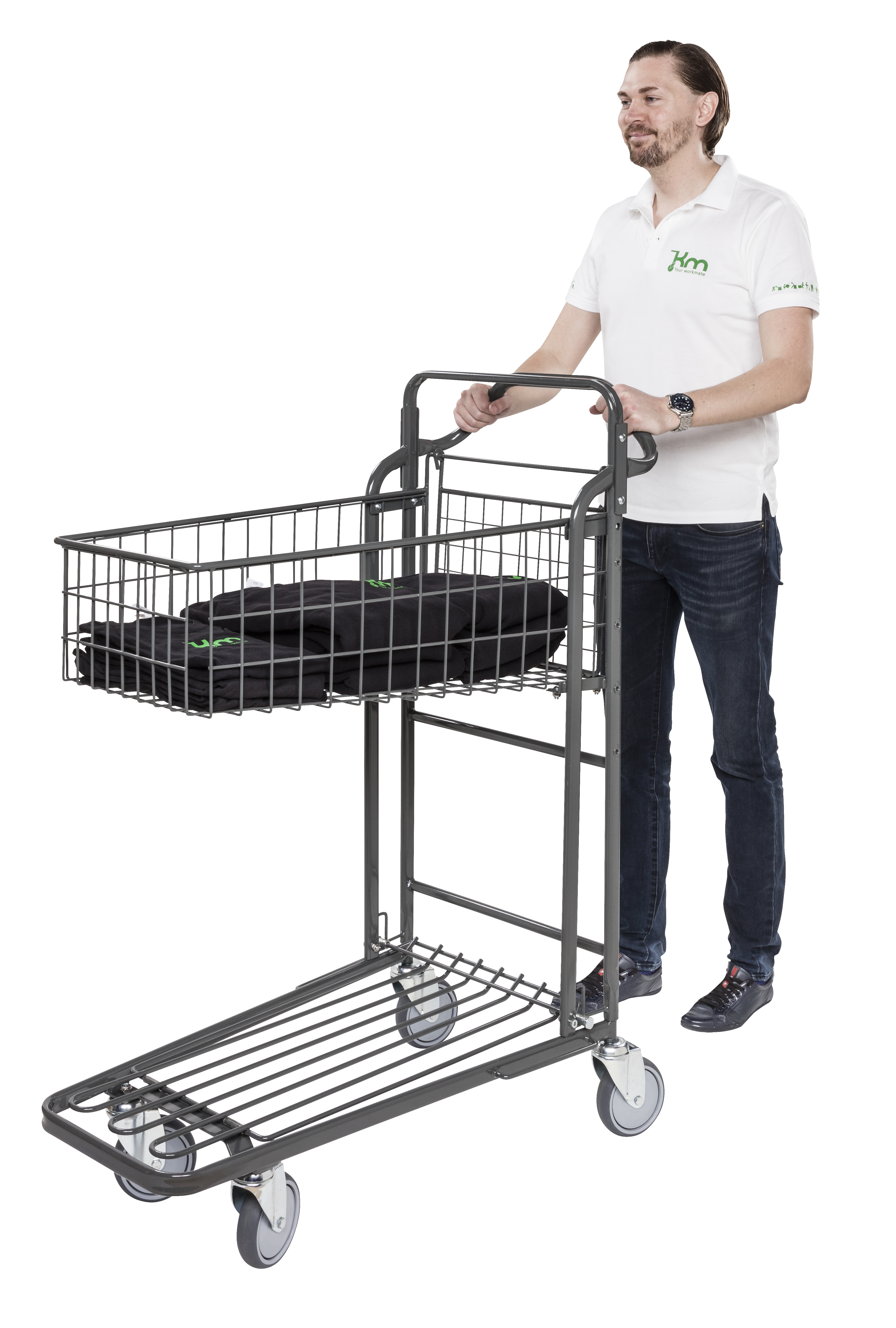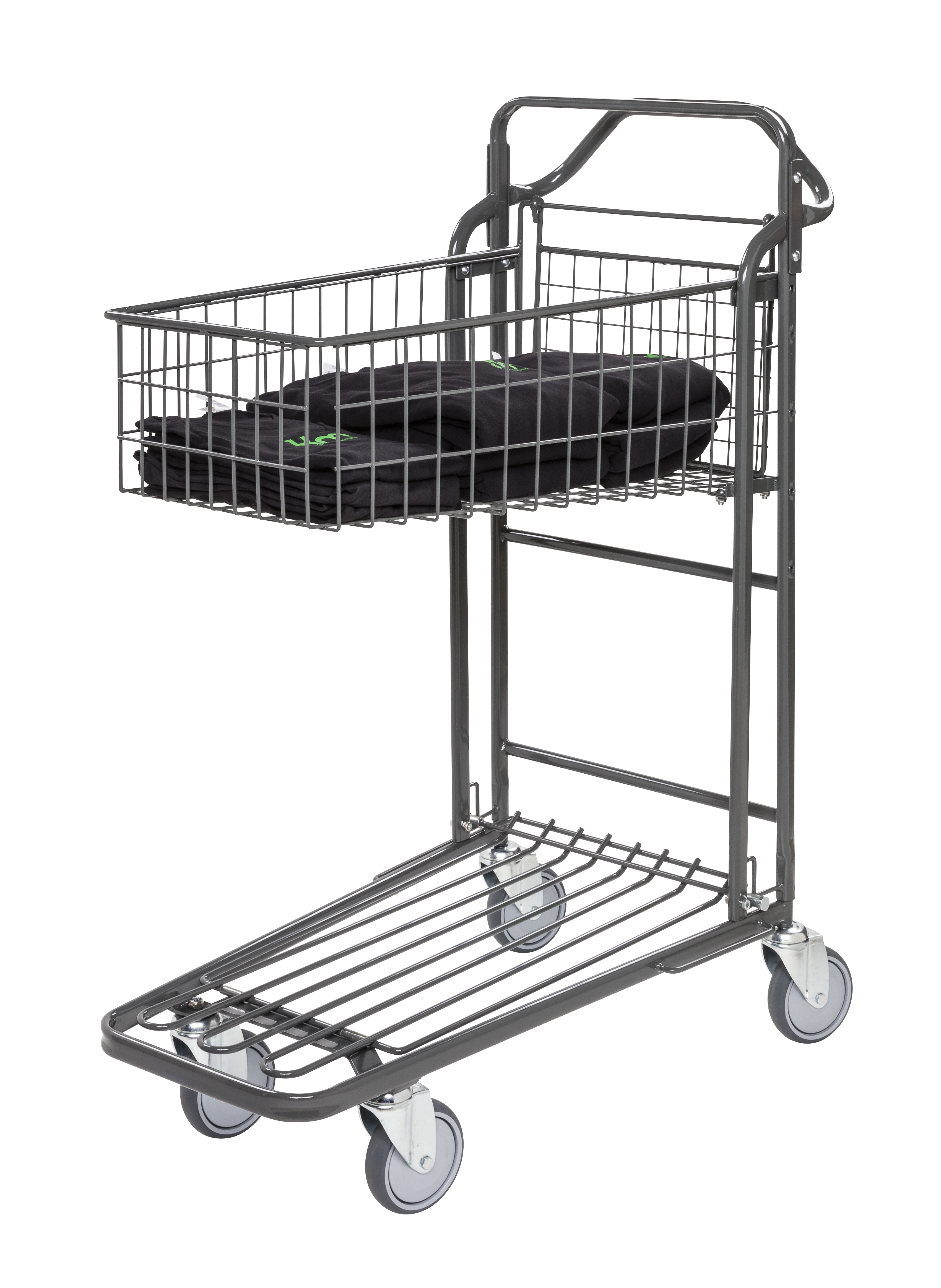 Nestable in store/warehouse trolley with basket.