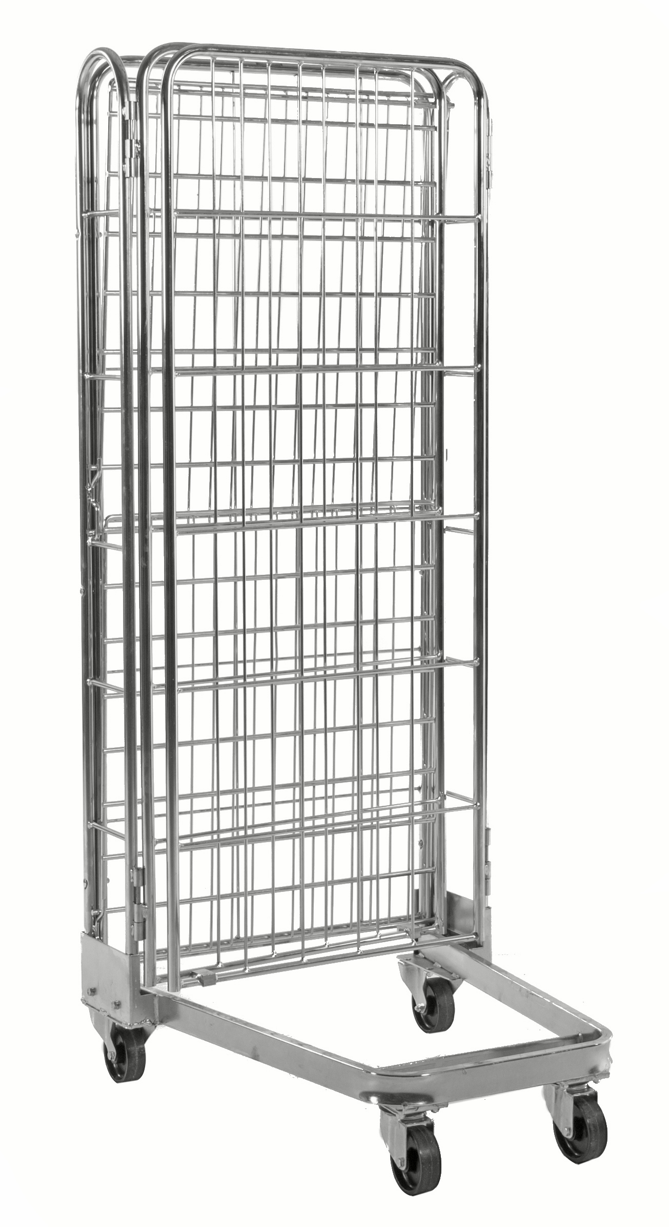 Stackable roll container with 3 walls and one shelf as standard. Available in several models.