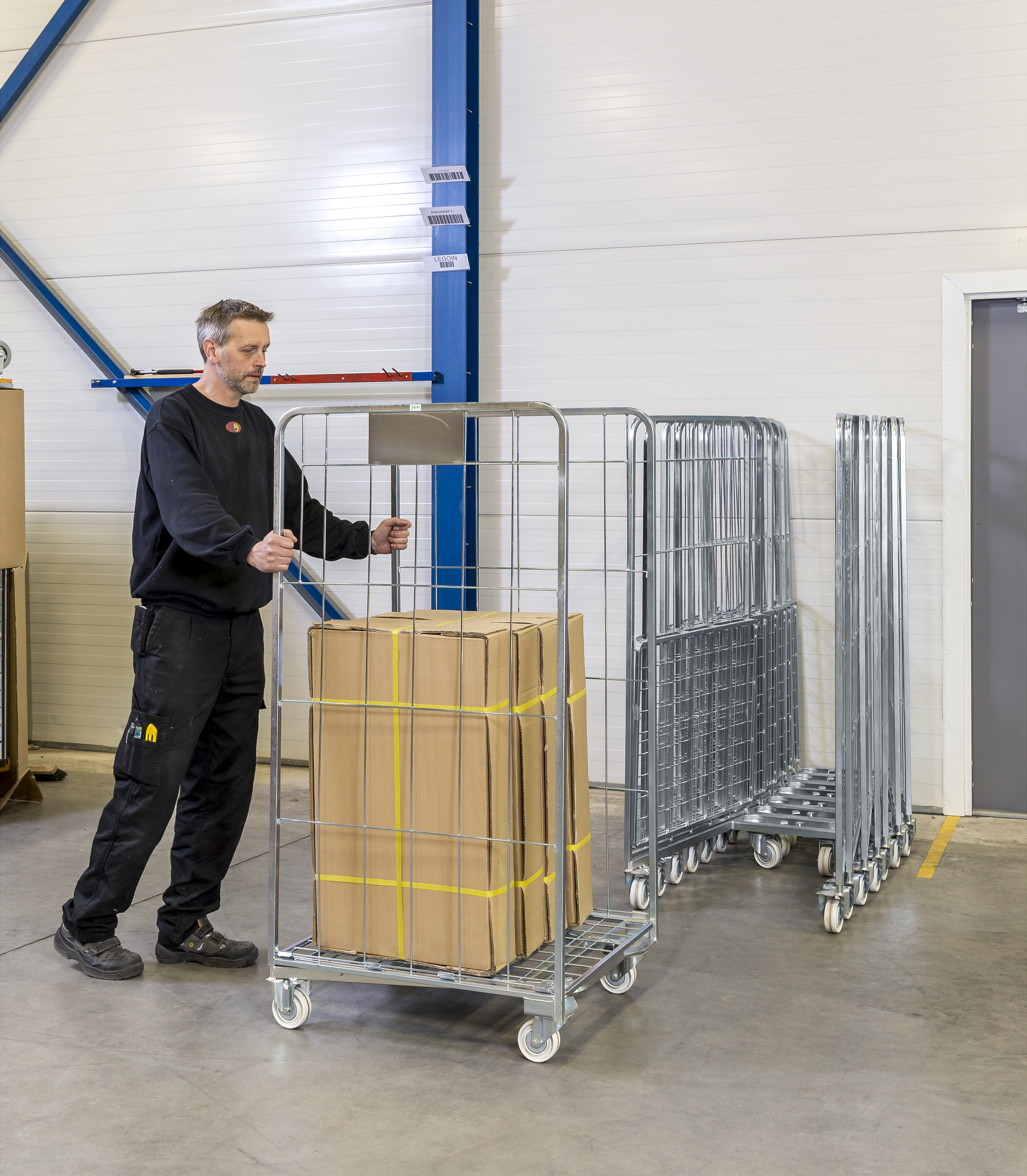 Stackable roll container with 2 walls. Available in several models.
